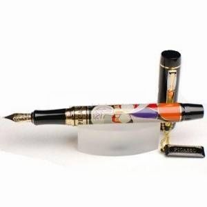 PICASSO - очень стильная, красивая и заметная перьевая ручка. Перо ручки - 14К золото с иридиевым наконечником. На корпусе из ювелирной латуни выполнен цветной фрагмент из эмали с позолоченными вставками из картины. Такая элегантная ручка станет памятным и долговечным подарком на любой праздник. Изысканный дизайн придётся по вкусу стильному и современному человеку. Ручка упакована в элегантный деревянный футляр.
