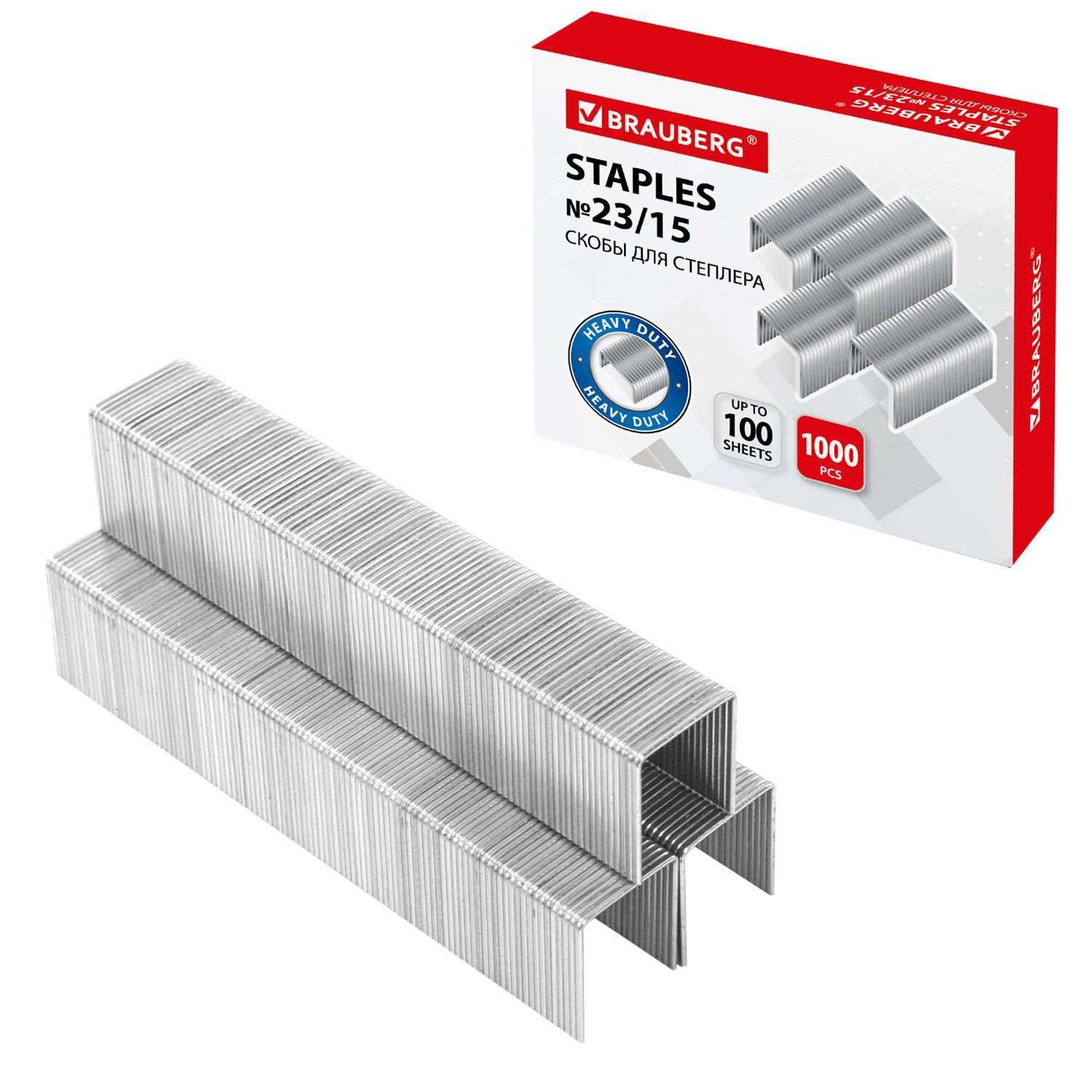 Заточенные стальные скобы серебристого цвета для степлера BRAUBERG размером № 23/15.