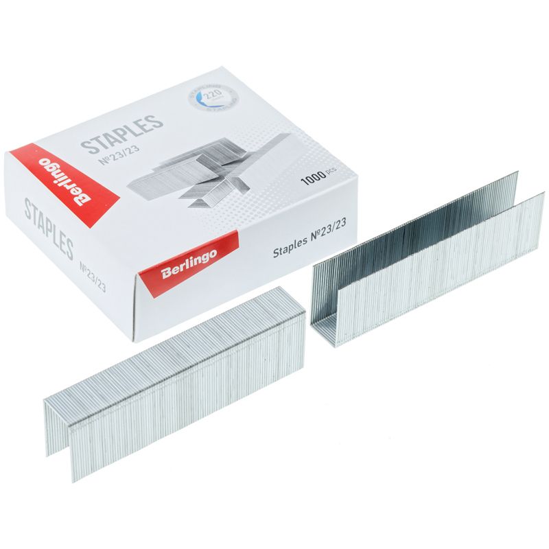 Скобы для степлера №23/23 Berlingo изготовлены из стальной проволоки, усиленный металл с покрытием из цинка предотвращает появленние коррозии.