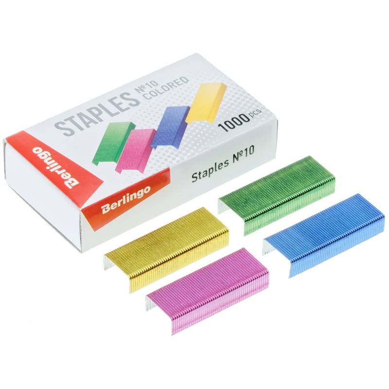Скобы для степлера №10 (1000шт.) Berlingo, цветные,