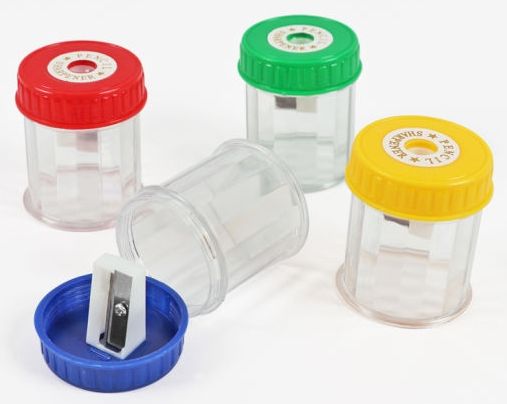 Точилка для карандашей одинарная круглый пластиковый контейнер, ассорти, Foska