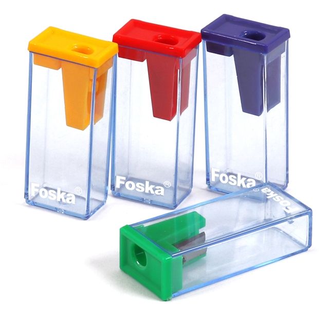 Точилка для карандашей одинарная прямоугольный пластиковый контейнер, ассорти, Foska